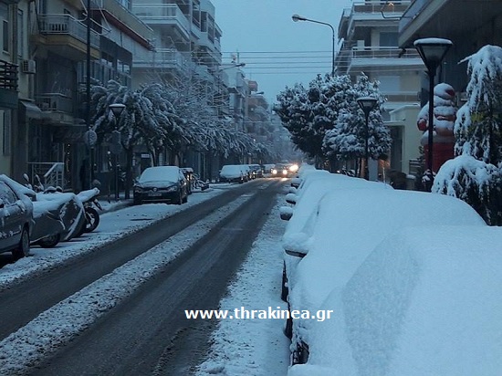 Λόγω της πυκνής χιονόπτωσης που εδώ και λίγη ώρα έχει καλύψει την Αλεξανδρούπολη, ο δήμαρχος Βαγγέλης Λαμπάκης αναγκάστηκε να αναθεωρήσει τη μεσημεριανή του απόφαση η οποία έκανε λόγο για λειτουργία των σχολείων σε όλο το δήμο, εκτός της δημοτικής ενότητας Φερών. Τελικώς, τα σχολεία θα μείνουν κλειστά σε όλο το Δήμο Αλεξανδρούπολης.